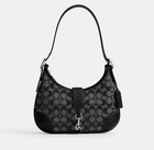 Coach Hamptons Hobo Bag Crystal Signature Jacquard Silver Black NEW SHIPS ASAP